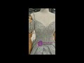 Silver Gray Tulle Sequins Spaghetti Straps Puff Sleeve Wedding Dress With Beading